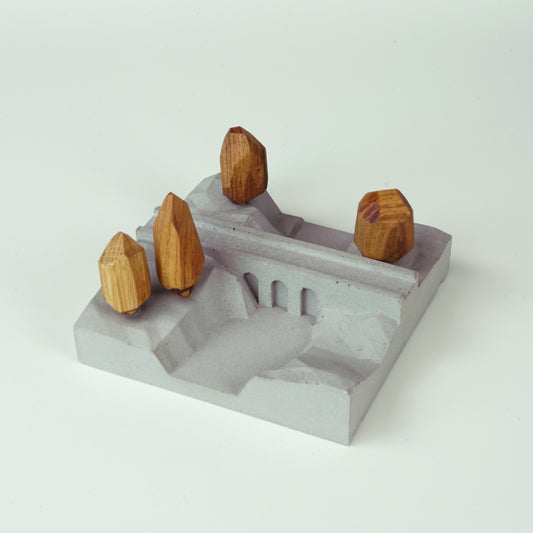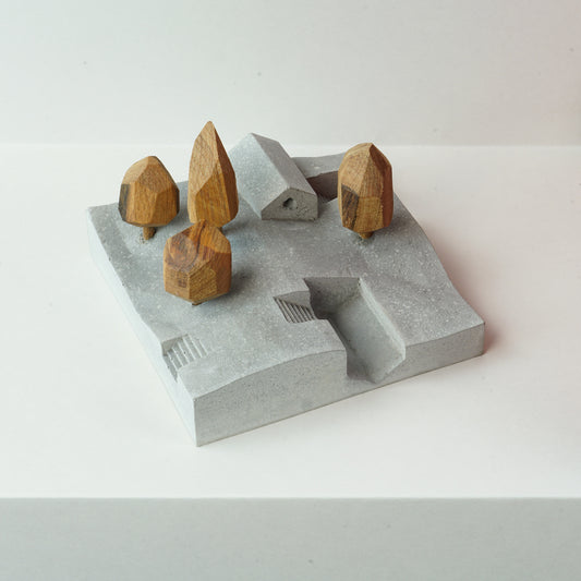are escapist sceneries, handmade in concrete and plain wood, to hang on the wall, or lay wherever you wish.